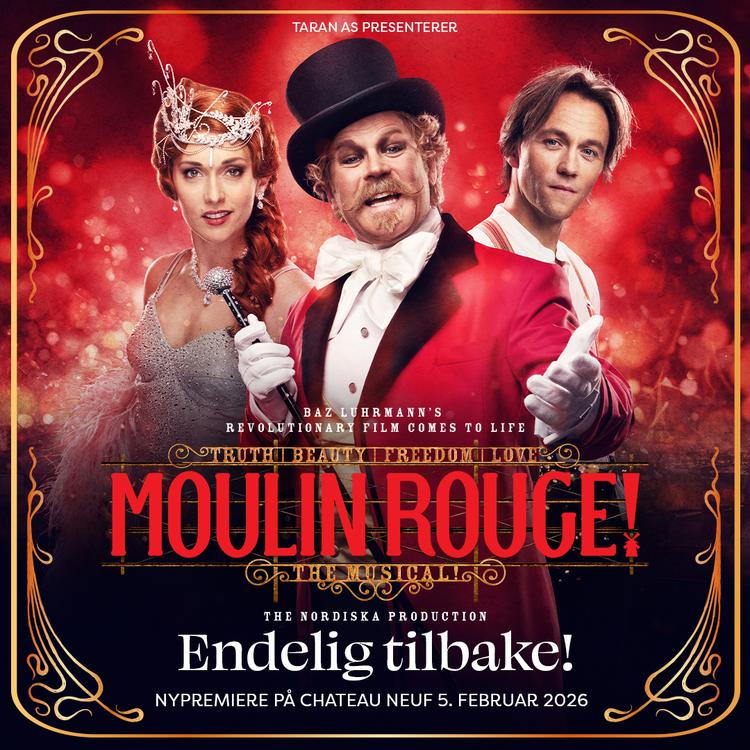 Bohemene kommer tilbake! Over 80 000 fans var med da Chateau Neuf ble forvandlet til en legendarisk Paris-nattklubb over 100 kvelder. Når skjer det igjen! Nypremiere 5. februar 2026. Moulin Rouge! The Musical vender tilbake, og Sondre Lerche, Heidi Ruud Ellingsen og Anders Baasmo kommer sammen med et ensemble på nærmere 30 dansere og skuespillere. Chateau Neuf i Oslo vil igjen bli forvandlet til den legendariske nattklubben i Paris på slutten av 1800-tallet. Tiden er «La Belle Époque» – atmosfæren er magisk! Moulin Rouge! The Musical er en ut-av-kroppen-opplevelse. En forførende, flamboyant og sanselig eksplosjon for øyne, ører, hjerte og sjel. En musikal med mange av landets beste skuespillere, sangere og dansere på scenen. Et manus med en bevegende kjærlighetshistorie i sentrum. De mest spektakulære kulissene og kostymene. Et vell av kjente og kjære sanger – både fra filmen og i tillegg mange nye. En sanselig eksplosjon med over 70 av musikkhistoriens største hits!