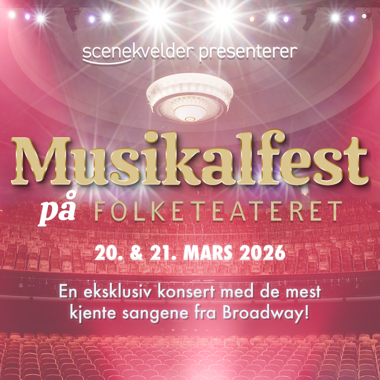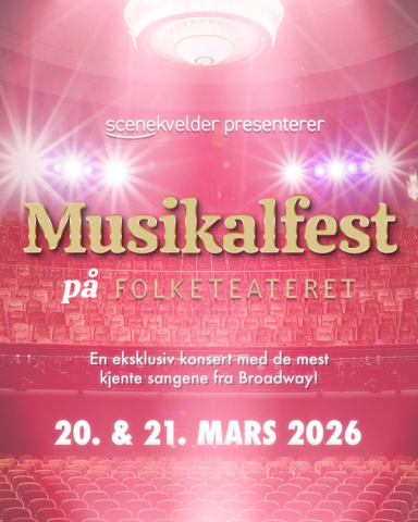 Scenekvelder inviterer deg til en eksklusiv helaften fylt med de største og mest elskede musikalhitene i verden. Dette er mer enn en konsert - det er en storslått feiring av musikalens prakt, med noen av de vakreste og mest ikoniske sangene fra både Broadway, West End og Folketeaterets største suksesser. Gled deg til den mektige musikken i The Phantom of the Opera, de fengende tonene i Mamma Mia, de intense øyeblikkene i Jesus Christ Superstar, magiske øyeblikk fra Frozen, den eventyrlige verdenen i Wicked, noen av de mest elleville sangene fra The Book of Mormon – og de tidløse, gripende melodiene fra Les Misérables. Dette er bare et lite utvalg av de mange storslåtte musikalene vi har på repertoaret. Flere overraskelser venter! Vi gleder oss til å ta deg med på en reise gjennom musikalens mest ikoniske og minneverdige øyeblikk. Ta med familie og venner, og bli med når vi fyller ærverdige Folketeateret med musikalglede og storslagne musikalnummere.